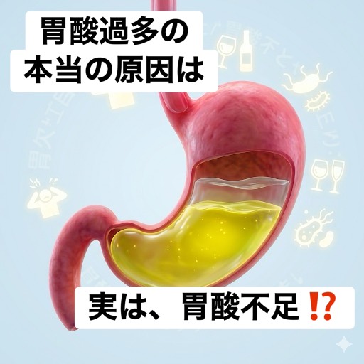 胃は少しでもその働きをカバーしようとして、「酸の強さが足りないなら、量をたくさん出そう!」と無理をして胃酸を大量に分泌します。 これこそが、皆さんがよく耳にする「胃酸過多」の正体です。